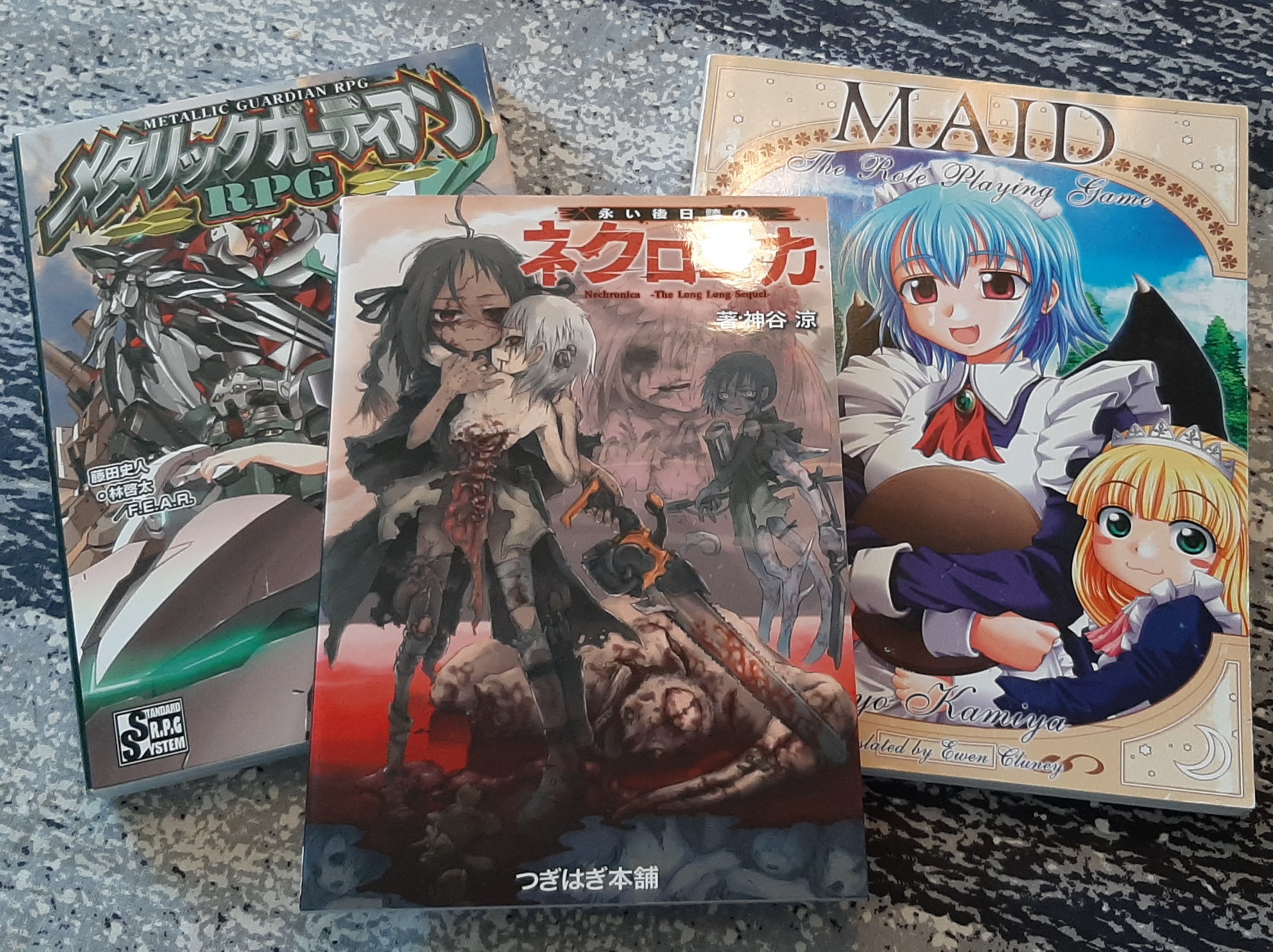 As in Finland and Kamm’s example country, Germany, Japan also had a role-playing game book in the late 1980’s and early 90’s, which then quieted down over the latter part of the decade and rose again well into the 2000’s. In 2008, we also got the first Japanese role-playing game in English. It was Kamiya Ryō’s comedy game Maid RPG (originally released in 2004). Later translations include Tenra Banshō (1996, translated 2014), Ryūtama (2007, translated 2015), and Shinobigami (2009, translated 2019). Practically all games translated from Japanese to English are the work of either Ewen Cluney or Andy Kitkowski. There are thousands of Japanese role-playing games, but bringing them outside the language area is on the shoulders of a small number of creators. Unfortunately, the most interesting-sounding game, Koaradamaru’s 2012 release Isamashī chibi no suihankia, (“Brave Little Rice Cooker”) has not been translated. [Translator’s note: since the first publication of this article, the game was translated by Björn-Ole Kamm and the translator has had the privilege of both playing and running it. The game is still not available to general audiences in English.]